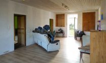 Ground floor: Conservatory of 14m2, living room of 30m2 with an open stone fireplace, laminate wood floor and triple aspect windows and doors. Kitchen of 20m2, a hallway leads to 1 bedroom of 15.90m2, there is a shower room, separate WC and an office of 7.25m2 which could be used as a bedroom.