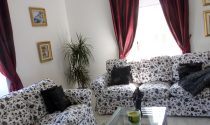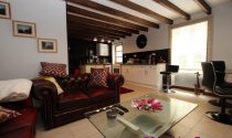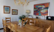 Open plan Lounge, Dining room and Kitchen (25.8m²): - Fully equipped kitchen including Oven, Hob, Sink with Draining Board, Washing machine, Fridge / Freezer, Electric Kettle, coffee maker, microwave. The dining area has a table and 4 chairs, Lounge area, Flat-screen Tv, 2 Leather Chesterfield Sofas, Electric Fire. Tiles floor, 2 double glazes windows. From this area the wooden staircase takes you to the 1st floor…………