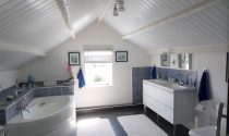 Bedroom 3 (16.1m²): – Cathedral beamed ceiling, wooden Floor, double glazed window.