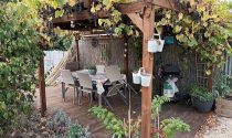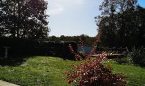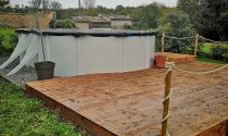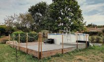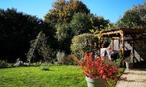 The garden is mainly laid to lawn with fruit trees (cherry, plum and apple), has an above ground swimming pool with terrace, a covered terrace for summer dining, a spacious workshop with electricity and off-road parking.