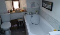 The ground floor has a spacious and welcoming living/dining room, equipped with a wood stove, and an American-style fitted kitchen plus another room which the current owners use as a TV room but which could easily be urned back into the 3rd bedroom, there is also a shower room with wc on this level. On the first floor there are 2 double bedrooms, one of which has a dressing room and a view over the garden, and a bathroom with toilet.