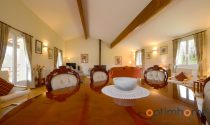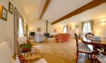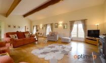 On the first floor, an entrance hall of 19.14m² with WC, large lounge/living room with a wood-burning stove of 78.7m²,a covered terrace of 40.5m², fitted kitchen of 25m², back kitchen of 8.77m², dressing room, two large bedrooms of 16.49m² and 13.7m² with their own bathroom and WC of 6.92m² and 7.42m².