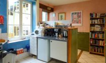 1st floor apartment with separate side access: entrance hall with a wooden staircase up to the first floor. Fitted kitchen of 13m2 with lino floor, door through to the adjoining 24m2 living room which has a wooden floor and wood burning fire. 1 bedroom of 15m2 with an open feature fireplace and lovely original wooden floorboards.
