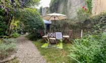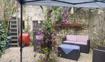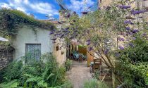 Outside: Patio, enclosed courtyard garden and at the end is a small house in ruins.