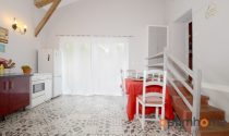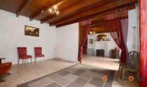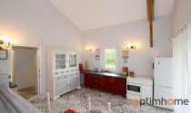 Comprising of a large living/dining room of around 40m² with a wood burner, a large equipped kitchen with French doors leading out onto a patio area overlooking the garden.