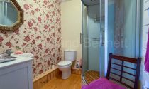 Ground floor: Central entrance hall of 20m2 with a super flagstone floor and beamed ceiling. A 34m2 living room has the original stone fireplace with a wood burner and tiled floor. There is a hallway with wooden stairs, a WC with handbasin and a fitted/equipped 13m2 kitchen which has a tiled floor and beamed ceiling. The 1st bedroom is 25m2 has a tiled floor, built in wardrobe and 2 steps to the 7m2 en-suite bathroom complete with a bath, shower, bidet + WC.