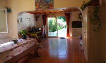 Living room (south/south-west) of 60m² opening directly onto the intimate courtyard and kitchen of 20m2.