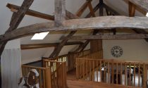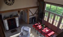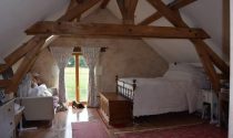 This lovingly restored 300m² property with a striking oak framed barn extension is accessed by a 3km rural lane through hectares of woodland. The original stone farmhouse has been beautifully restored, offering authenticity and charm. On the ground floor, there is a hallway, a bathroom with an independent shower and a large stunning lounge area with two feature fireplaces and travertine floors, one of which houses a log burner with a back boiler (allowing for a very desirable self-sufficiency in such economic times) that adds not only a warming ambience, but also heats the whole property throughout and the hot water with wood that is supplied by the property’s own forest. The 45m² living room leads to a 60m² vaulted room, which is equipped with a luxurious expanse of beams, glass doors, windows, and travertine floors, and ultimately extends to a traditional hand painted bespoke fitted kitchen with access to a terrace area. The 19th century oak barn conversion allows for a truly luminous and open space that follows the sun throughout its daily journey from East to West. The stone and oak accommodation are linked by a bridge on the first floor from the mezzanine area, which accesses the stunning 50m² master suite with French doors that open onto a south facing balcony; the suite comprises of a 35m² bedroom, dressing room and ensuite complete with free standing bath and independent shower. There is also a further two double bedrooms, mezzanine/bedroom, and a family bathroom. No attention to detail has been spared with insulation, warmth, and comfort. There is also a single garage with a storage area above and a further 200m² stone outbuilding which offers restoration potential if required. This magnificent property is positioned centrally within its 4.3-hectare plot that is comprised of 2 hectares of prairie and 2.3 hectares of woodland, all of which is enclosed in its own beautiful piece of paradise.