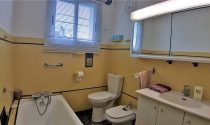 With lovely parquet floors throughout, the ground floor of the property consists of a double living and dining room with a fireplace, a separate kitchen with a family dining area (all opening on to the garden terrace), a large bedroom, office, and a bathroom.