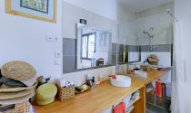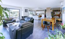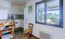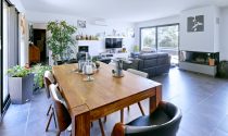 Built in 2020, this 110 m² bioclimatic house embodies modernity and energy efficiency. The bright living room, combined with a dining room and an American kitchen, creates a friendly and open space, perfect for everyday life. Two bedrooms, each with private bathroom, as well as an office area offer comfort and privacy. Two separate toilets complete the interior layout.