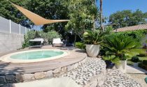 The exterior offers a beautiful covered terrace, a landscaped garden with exotic charm and its jacuzzi.