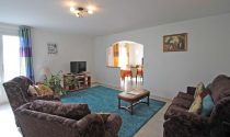 Situated on a fully-enclosed 3,000 square metre site with well-maintained front and rear gardens containing mature trees and bushes, just 900 metres from the town centre, this light and airy 3-bedroomed detached home of 109 square metres has a spacious open-plan lounge/diner and a modern kitchen, a bathroom with toilet, and a separate WC.