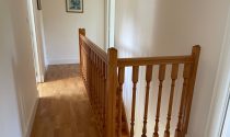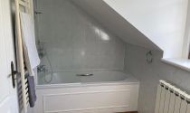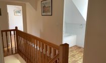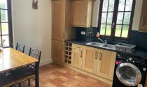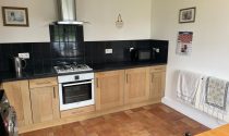 The ground floor has a fully fitted oak kitchen, and a spacious lounge which opens onto the garden. In the hallway is a storage cupboard with the 200ltr hot water tank. Upstairs, there is a bathroom and three bedrooms, two with built-in wardrobes, one with an en-suite shower room and one with a Juliet balcony.