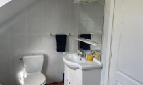 Bedroom with built-in wardrobe and en-suite shower room with washbasin and toilet -