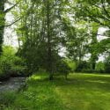 There is a south facing garden with several fruit trees, a fenced patio of 5m x 15m and a small river at the bottom of the garden.