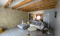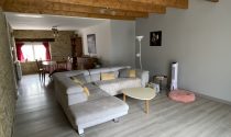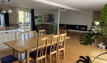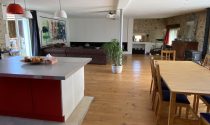 - Une grande pièce de vie séjour/cuisine ouverte de 95m2 chaleureuse et conviviale avec un poêle à bois, une grande baie vitrée exposée plein sud d’une part et une autre baie vitrée donnant sur une terrasse d’autre part