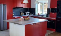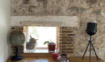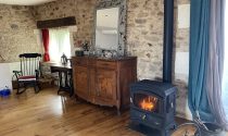 - A large living room/open kitchen of 95m2, warm and friendly with a Godin wood burning stove, a large bay window facing south on one side and another bay window opening onto a terrace on the other side
