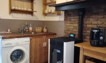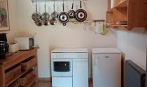 -Fitted kitchen (8m²): tiled floor, pellet stove