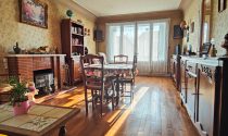 1st floor: Entrance hall, a through living room of 26m2 has a lovely wooden floor, brick fireplace (not in used), window to the side and glazed doors opening to the balcony and flood the room with light. 2 bedrooms 11.40 + 11.80m2 both have wooden floors and there is a bathroom of 8.50m2 and a separate WC.