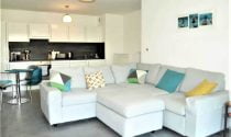 a spacious living room, a modern and fully equipped kitchen, two bedrooms with access to the terrace