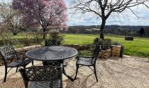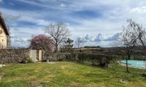 South-facing terrace with stunning views, garden, a 40m² covered terrace to the rear, covered storage area, two storage rooms (one used for bikes), a pond, two beautiful stone barns (100m² and 190m² with endless possibilities), and two vehicle entrances