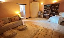 Living room 63m² Tiled floor, 2 wood-burning stoves, oak beams