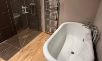 Bathroom 6.5m² Laminate flooring, WC, sink, walk-in shower, roll-top bathtub, (mechanical ventilation)