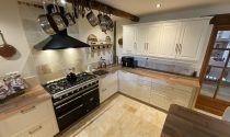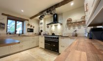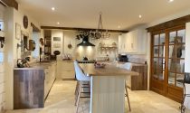 Double doors from the lounge take you into the newly fitted kitchen (2022) with quality units and a large central dining island, natural stone flooring and a Jotul log burning fire. Off the kitchen is a separate utility/ laundry/room. From the kitchen you will step out into a separate covered dining & lounge area ideal for al fresco dining, with access to the garden.
