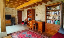 Stone cottage with large room of 26m2 boasting exposed stone walls, wooden beams and a fireplace with wood burning stove. External access to a 26m2 attic. Stone outbuilding of 11.5m2.