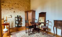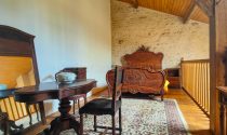 Ground floor: entrance into a spacious living room of 51.4m2 with full height ceiling, exposed stone walls and ceramic wood burning stove. Generous bedroom of 20.6m2 with wooden floor, wood burner and direct access to the garden. Shower room with WC.