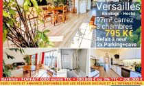 *Comprenant : * Belle entrée avec penderie donnant d'un côté sur salon / salle à manger de 35 m² et de l'autre, une cuisine fermée/équipée. * Porte palière séparant l'espace couchage comprenant : 3 chambres desservies par un couloir avec 2 grands placards double, une salle de bains et une salle de douche avec WC. * Deux places de parking en sous-sol ainsi qu’une cave de 8 m² accompagnent ce bien. Parking visiteur sécurisé dans la copropriété. * L'appartement a été entièrement rénové en 2022 (2x vitrage, isolation phonique et thermique des murs intérieurs, cuisine, salles d'eau, sols et peintures intégrales). La chaudière de la copropriété a été changée en 2022 et la toiture révisée. DPE : D TF:2200 CC:400/mois * Idéalement situé, à moins de 10 minutes à pied de l’entrée du Parc du Château (Porte St Antoine) et 5 min des commerces (marché du Chesnay à 3 minutes à pied). A quelques minutes des principales lignes de bus (lignes 2 et 5) desservant les gares de Versailles (Rive-Droite, Rive-Gauche et Chantiers) et l’accès aux principaux axes routiers est facile (A13, A86). Charges mensuelles 400€. Eau chaude/ froide et chauffage collectif. Copropriété de 23 lots principaux. Taxe foncière : 2100 euros SECTORISATION HOCHE Gare Versailles-Rive-Droite (Ligne L) 1.2km Gare Versailles-Rive-Gauche (Rer C) 1.8km. * Pas de procédure en cours. Financement et C.I demandés pour le bon de visite.
