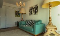 The lower level (garden level) features a veranda, a generous living-room with a modern semi-open kitchen, fully fitted and equipped, a master suite with access to the terrace and garden, a toilet, and a laundry-room. The living area opens onto a terrace and garden exposed to the south and west offering an unobstructed view of the mountains and the village.