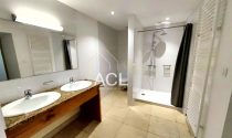 Also on the ground floor, a private duplex apartment offers a generous living/kitchen area, a bathroom with double sink, walk-in shower and wall-hung WC. Upstairs are two beautiful bedrooms and a second bathroom with similar high-end features. A double tiled garage with motorized doors completes this level.
