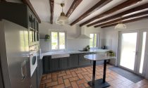 Elle est composée de : Au rdc : Un grande entrée desservant d'un coté un espace nuit avec une chambre 19m² et une salle d'eau, et de l'autre, l'espace vie très lumineux avec un salon de 40m² et son poêle à bois, une cuisine équipée de 20m² et son cellier assorti, ainsi qu'une buanderie.