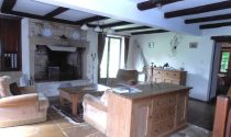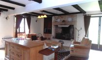 Lounge (33m2) Flagstone floor. Beams. Open fireplace, and pellet burner which heats the downstairs bedroom, the kitchen and upstairs