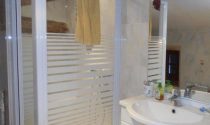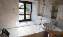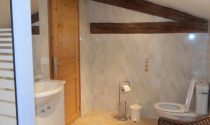 Shower room (7m2) Shower, vanity unit, bidet and wc. Beamed ceiling. Tiled floor. Extractor.