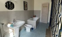 Bathroom Bathroom 9m² Tiled floor, bathtub, bidet, sink, cupboard