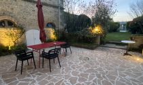 A pretty paved courtyard lit with spotlights at night leading to the walled garden, not overlooked, with small storage outbuildings and a heated swimming pool (11m x 4m²). Garage attached to the house.