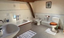 -Bathroom (9m²): carpet, bath with shower, bidet, WC, washbasin, Velux window