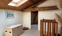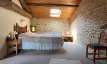 -Bedroom (12m²): carpet, exposed stone, cupboard with Cumulus, Velux window. This bedroom has independent access via a 2nd staircase in the sitting room or via the second bedroom