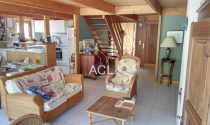 Nestled in the heart of the peaceful and sought-after village of Saint-Julien, this timber-framed house is just 150 meters from the beach and coastal paths. Full of charm and designed with an eco-friendly approach, it features sloping slate roofs and is set in a serene environment on a 436 m² enclosed and wooded plot.