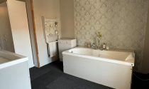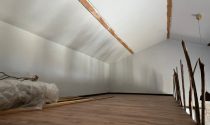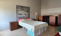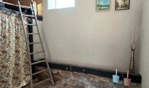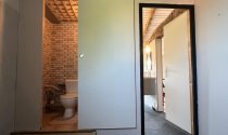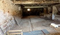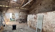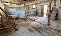 Spacious kitchen / dining room (39 m²) – tiled floor, pellet stove, water and electricity in place for a central island