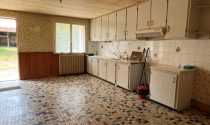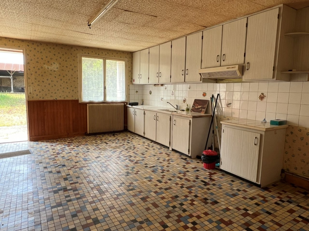 -Entrance into the Kitchen (22.71m²): tiled floor, simple kitchen, sink, window (secondary glazing)