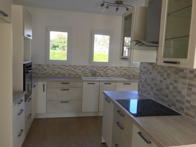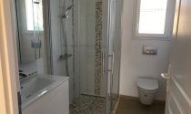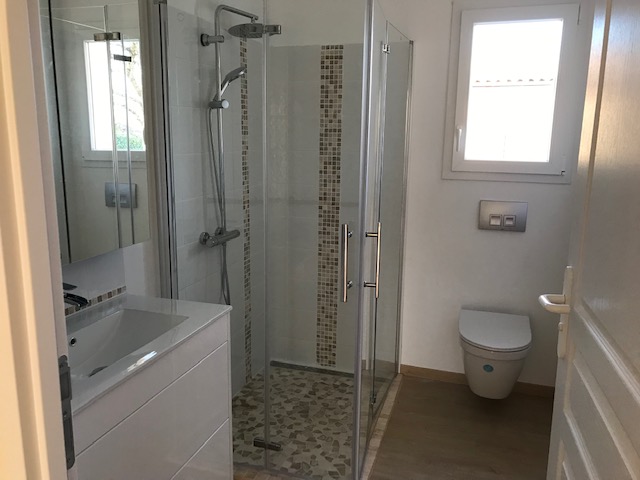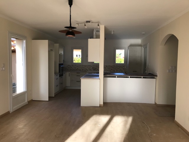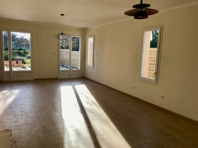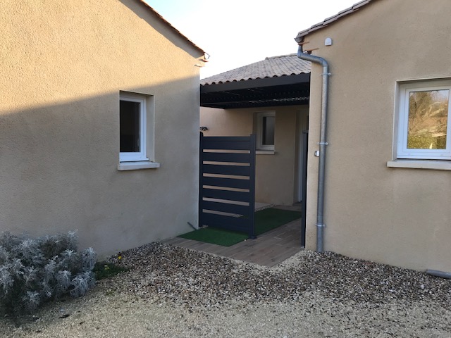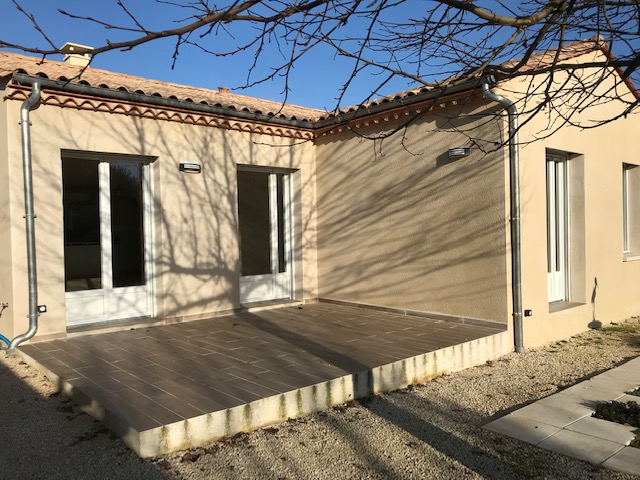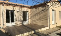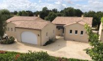 Quiet location, single-story , south-facing, two bedrooms, two bathrooms with walk in showers, large living space with equipped open plan kitchen , laundry, double garage and mini pool in small enclosed garden of 400m². The house is equipped with a heat pump and electrically operated shutters , well oriented and insulated thus giving a DPE index A.
