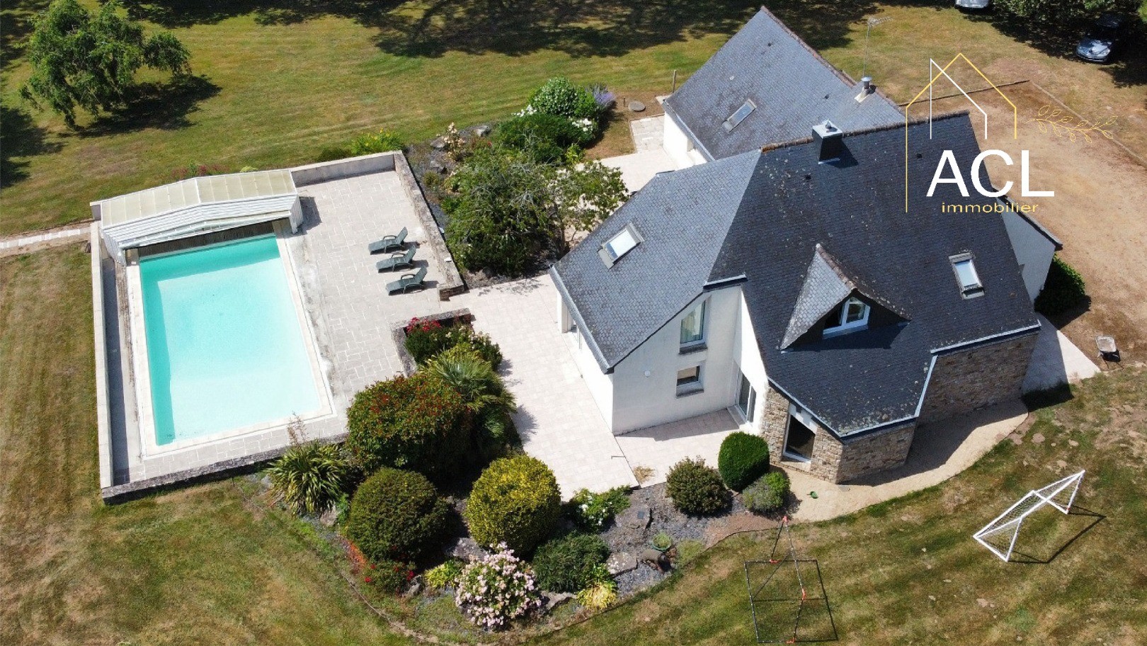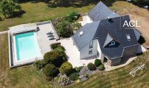 Located at the end of a cul-de-sac, sheltered from view and away from the hustle and bustle, this lovely villa, close to the beaches, reveals itself discreetly. Enclosed by walls, it offers rare privacy. Its white facade, accented with natural stone and topped with a slate roof, fits perfectly into a carefully preserved green setting. Built in 1993, the house stands at the heart of a landscaped park of nearly 7,000 m² and offers 250 m² of living space.