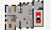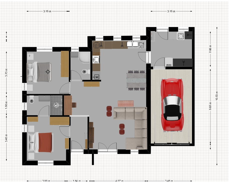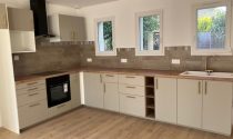 large living space with equipped open plan kitchen , laundry, single garage 20m² and a small