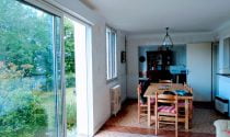 Stone steps lead you upto the entrance where there are patio doors which frame the magnificent views.