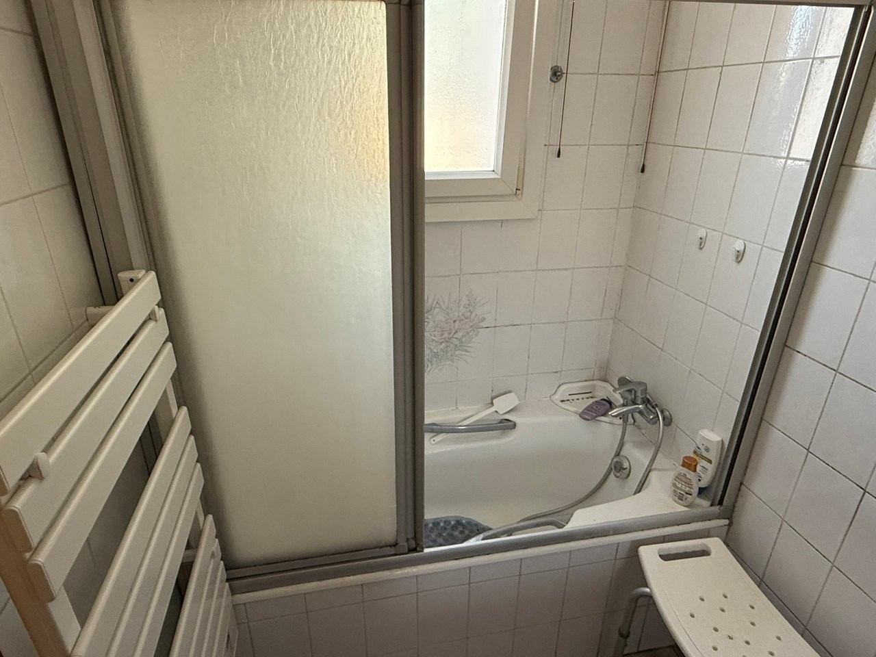 With private bathroom (4m²): tiled flooring, bathtub, sink, towel dryer