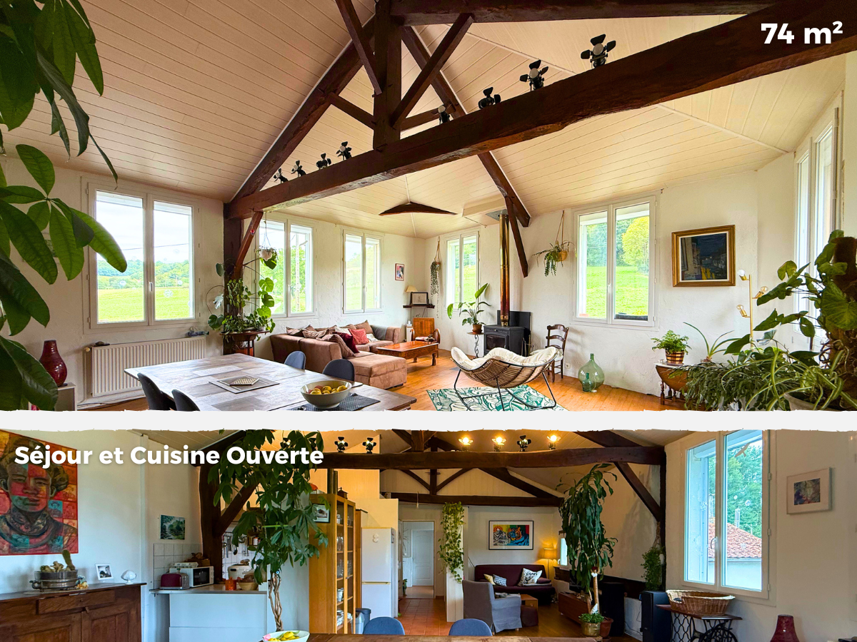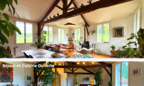 Striking 74 m² cathedral-style living room with exposed beams, light and airy volumes