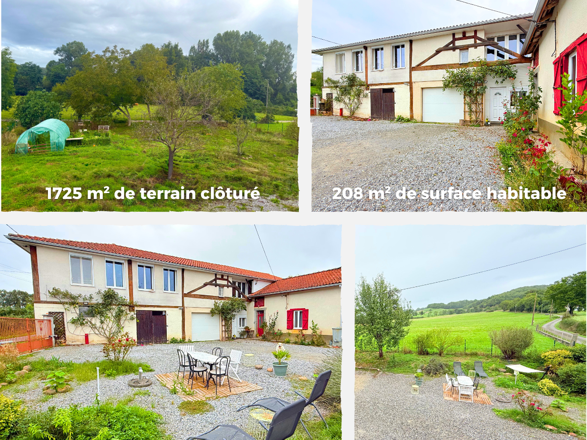 This renovated farmhouse of 208 m² is peacefully located in the village of Saint-Plancard (31, Haute-Garonne), just 1h20 from Toulouse and 20 minutes from Saint-Gaudens, Montréjeau, Boulogne-sur-Gesse and Lannemezan.